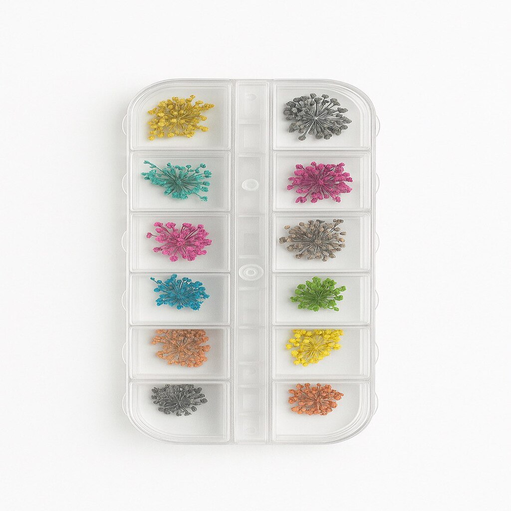 Made from real, carefully preserved flowers, they are lightweight and easy to apply on natural nails, gel nails, or acrylics. Their natural texture and vibrant shades give a fresh and stylish appearance that stands out from traditional nail decorations. Each piece is designed to maintain its beauty without losing color or shape.
